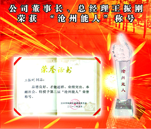 公司董事長、總經理王振剛榮獲 “滄州能人”稱號