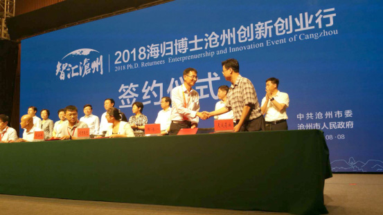 8月8日,“智匯滄州——2018海歸博士滄州創(chuàng)新創(chuàng)業(yè)行”簽約儀式在滄州國際會議中心舉行。董事長兼總經理王振剛應邀參加盛會并與兩名海歸博士成功簽約。